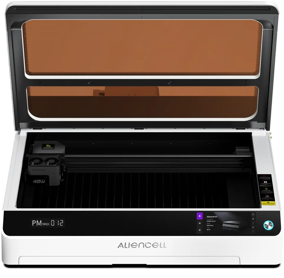 Aliencell laserski gravirni stroj X1 je snažan laserski gravirni stroj za precizno graviranje i rezanje u profesionalnim i kreativnim radnim okruženjima. Zahvaljujući samostalnom operativnom sustavu, X1 radi potpuno neovisno o računalu, omogućujući učinkovite tijekove rada s maksimalnom kontrolom.