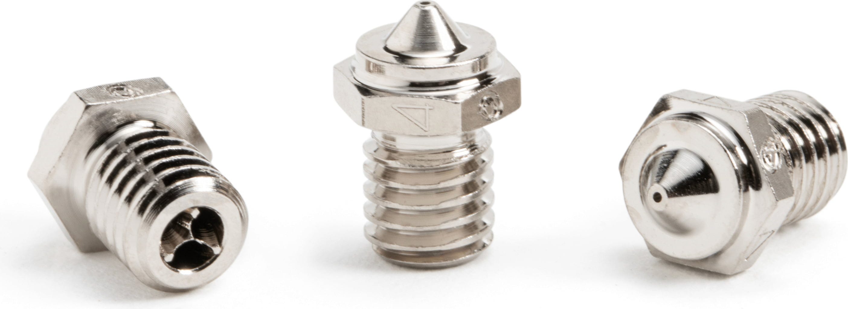 Bakrene mlaznice su prekrivene niklom, što im daje veću otpornost na koroziju i niži koeficijent trenja. Kombinacija vodljivog bakra i zaštitnog premaza omogućuje ravnomjernu i preciznu ekstrudiju, čak i pri visokim brzinama tiska. Ovo osigurava poboljšanu kvalitetu ispisa i smanjuje vjerojatnost začepljenja.