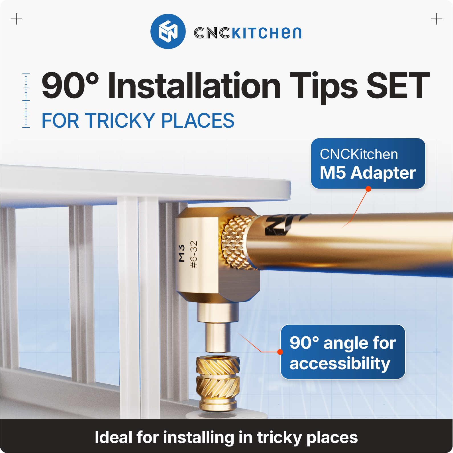 Ovaj CNC Kitchen 90° alat za toplinsko umetanje savršen je dodatak svim CNC Kitchen adapterima s M5 navojem. Alat za toplinsko umetanje osigurava vrhunsku termalnu vodljivost i jednostavno se mijenja za brzu i jednostavnu zamjenu.