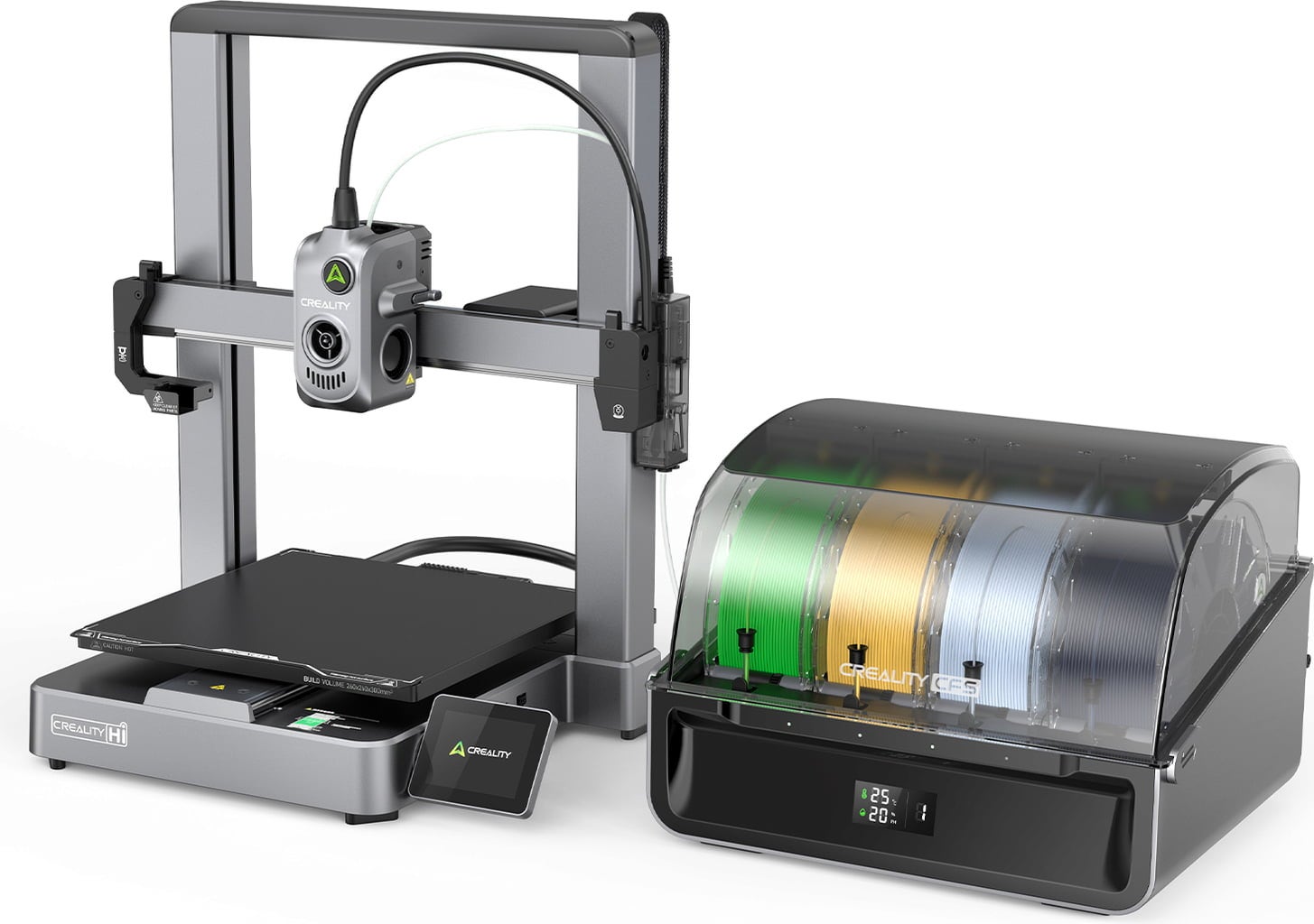 S Creality Hi Combo dobivate najbolje od oba svijeta: napredni Creality Hi 3D printer i Creality CFS sustav za više materijala. Ovaj paket snage daje vam precizne ispise brzinom koja oduzima dah i slobodu eksperimentiranja s različitim materijalima i bojama.