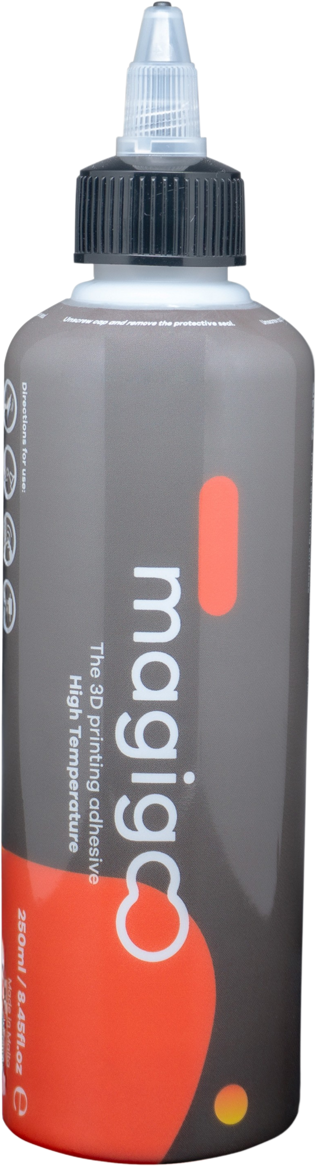 Magigoo Glide HT je visoko specijalizirano ljepilo za 3D tiskarske ploče namijenjeno profesionalnom FDM tisku s visokotemperaturnim i visokokvalitetnim materijalima poput PEEK-a, PEI-ja (poliéterimid), PPSU-a i drugih industrijskih polimera. Ovi materijali zahtijevaju iznimno stabilno prianjanje pri vrlo visokim temperaturama tiskarskih ploča i radnog prostora, koje konvencionalna rješenja za prianjanje brzo dosežu svoje granice. Posebna HT formulacija Magigoo Glide HT dizajnirana je za maksimalnu termičku stabilnost i pruža stalno snažnu, materijalu prilagođenu vezu pri temperaturama tiskarskih ploča od preko 110 °C pa sve do 150 °C i više. Na taj način se pouzdano sprječava savijanje, delaminacija i prekid ispisa – čak i kod velikih, masivnih ili visoko opterećenih dijelova s izuzetno visokim unutarnjim napetostima.