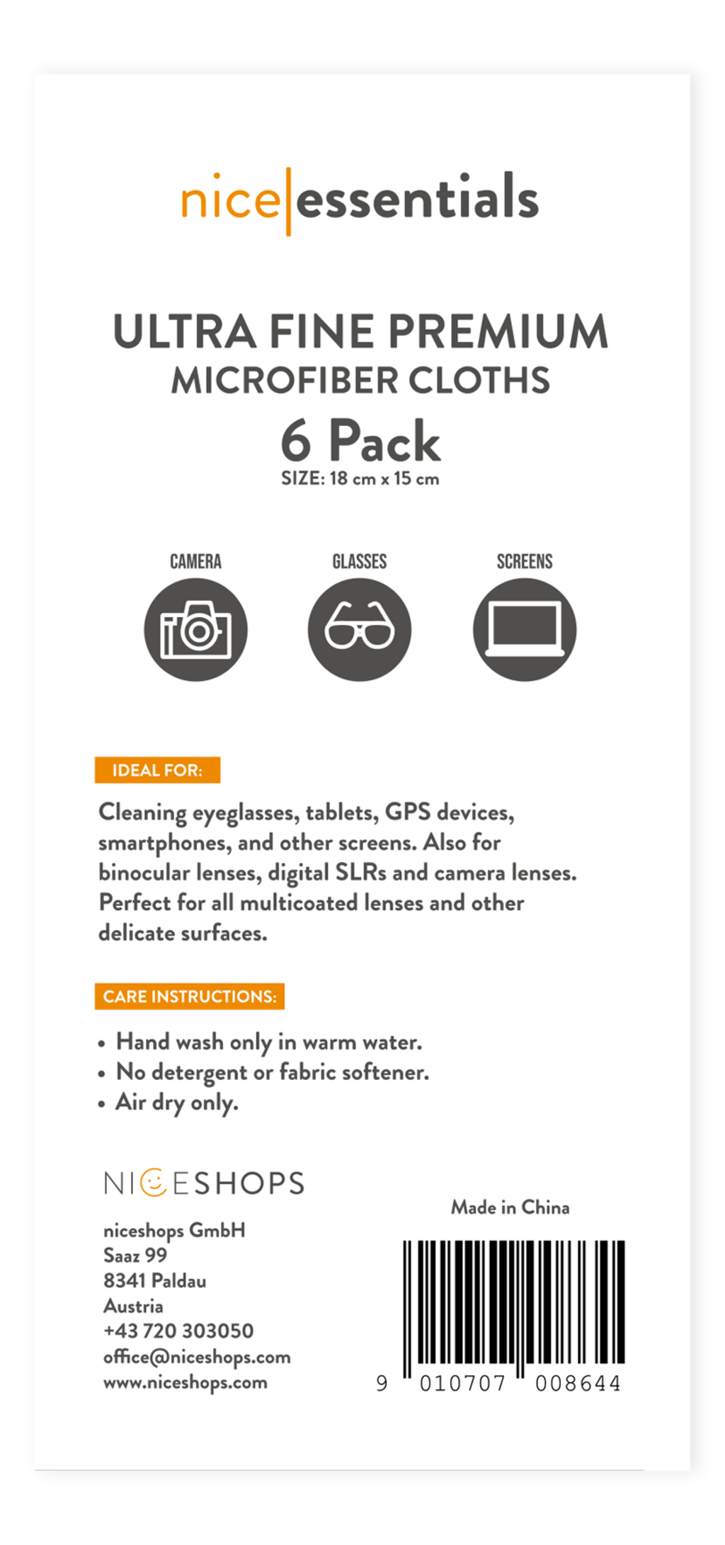 nice essentials Set ultra finih krpica za čišćenje od mikrovlakana savršene su za temeljito, a nježno čišćenje osjetljivih površina poput naočala, ekrana ili leća fotoaparata. Kvalitetan, gusto tkan materijal od mikrovlakana učinkovito privlači prašinu, prljavštinu i masnoću te lako uklanja dosadne otiske prstiju – bez ogrebotina i bez dlačica.