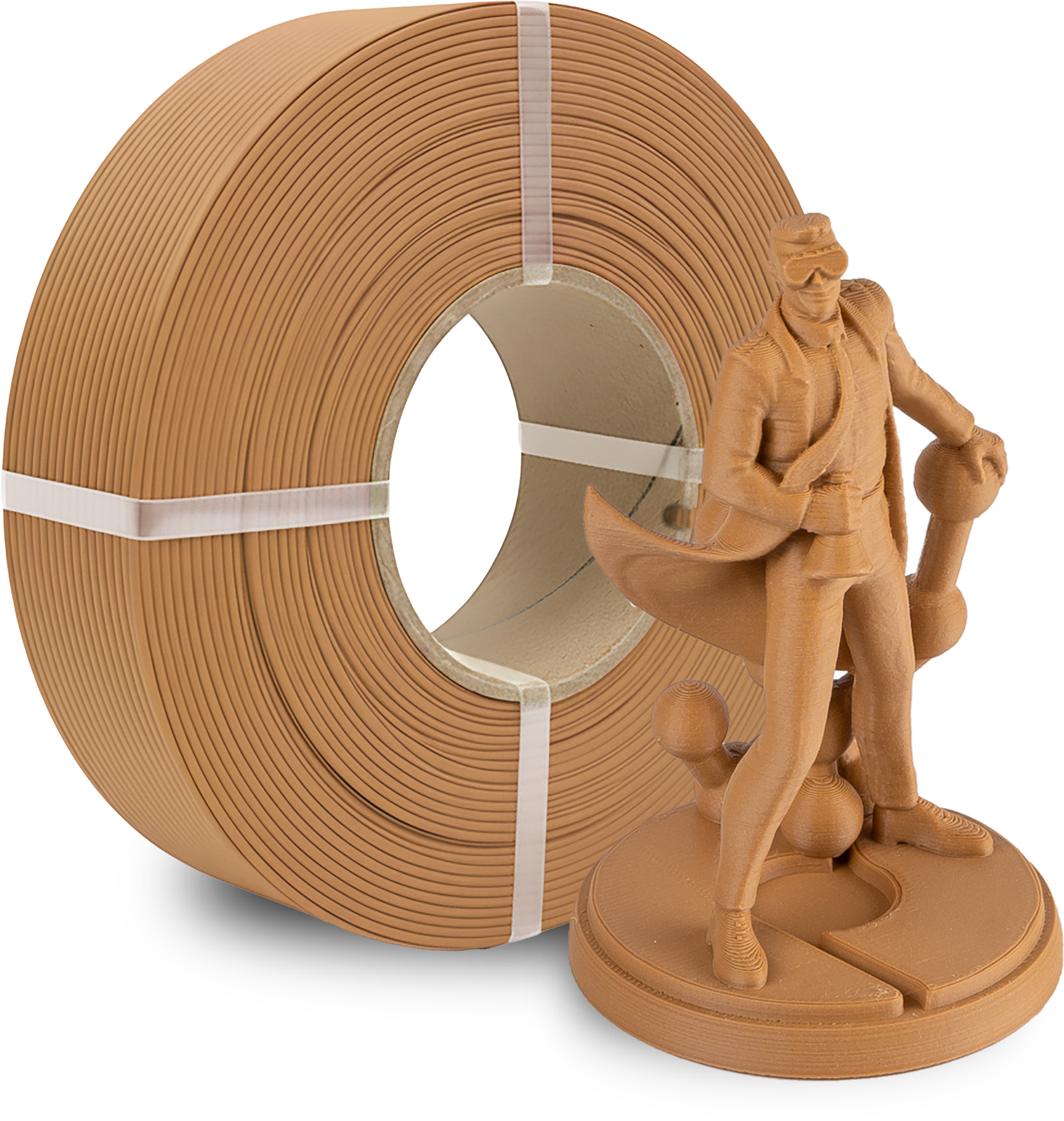 Polymaker Refills izrađeni su od filamenata bez čvrste špule. Namijenjeni su postavljanju na višekratnu Master Spool. Polymaker nudi vlastiti Polymaker MasterSpool kao STL datoteku koju možete sami isprintati (pogledajte pod Preuzimanja ili ga preuzmite na MakerWorld).