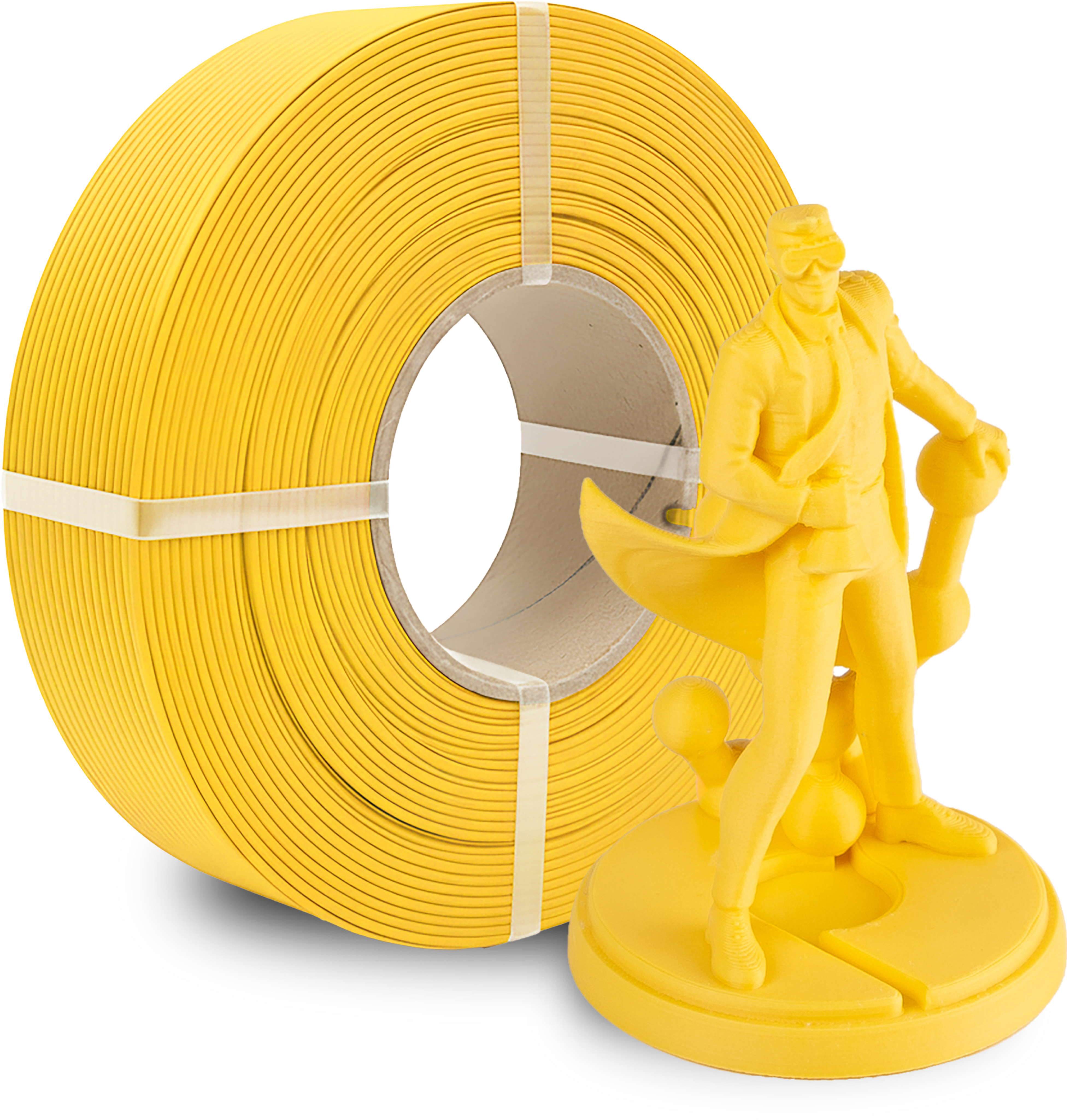 Polymaker Refills sastoje se od čisto namotanog filamenta bez čvrste špule. Namijenjeni su za postavljanje na višekratno uporabljivu Master Spool špulu. Polymaker nudi vlastitu Polymaker MasterSpool kao STL datoteku, koju možete sami ispisati (pogledajte pod Preuzimanja ili preuzmite na MakerWorld).