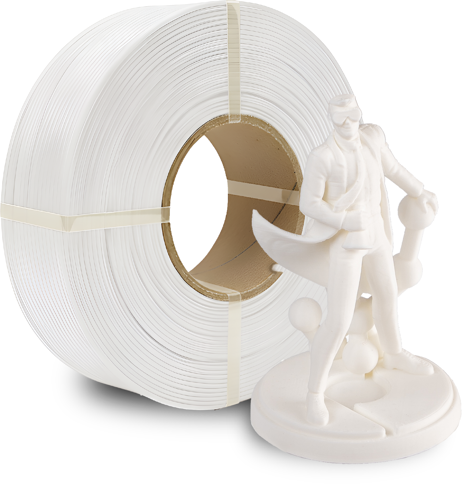 Polymaker Refills sastoje se od čisto namotanog filamenta bez čvrste špule. Dizajnirani su za postavljanje na višekratno upotrebljivu Master Spool. Polymaker omogućuje vlastiti Polymaker MasterSpool kao STL datoteku koju možete sami ispisati (pogledajte pod Preuzimanja ili preuzmite na MakerWorld).