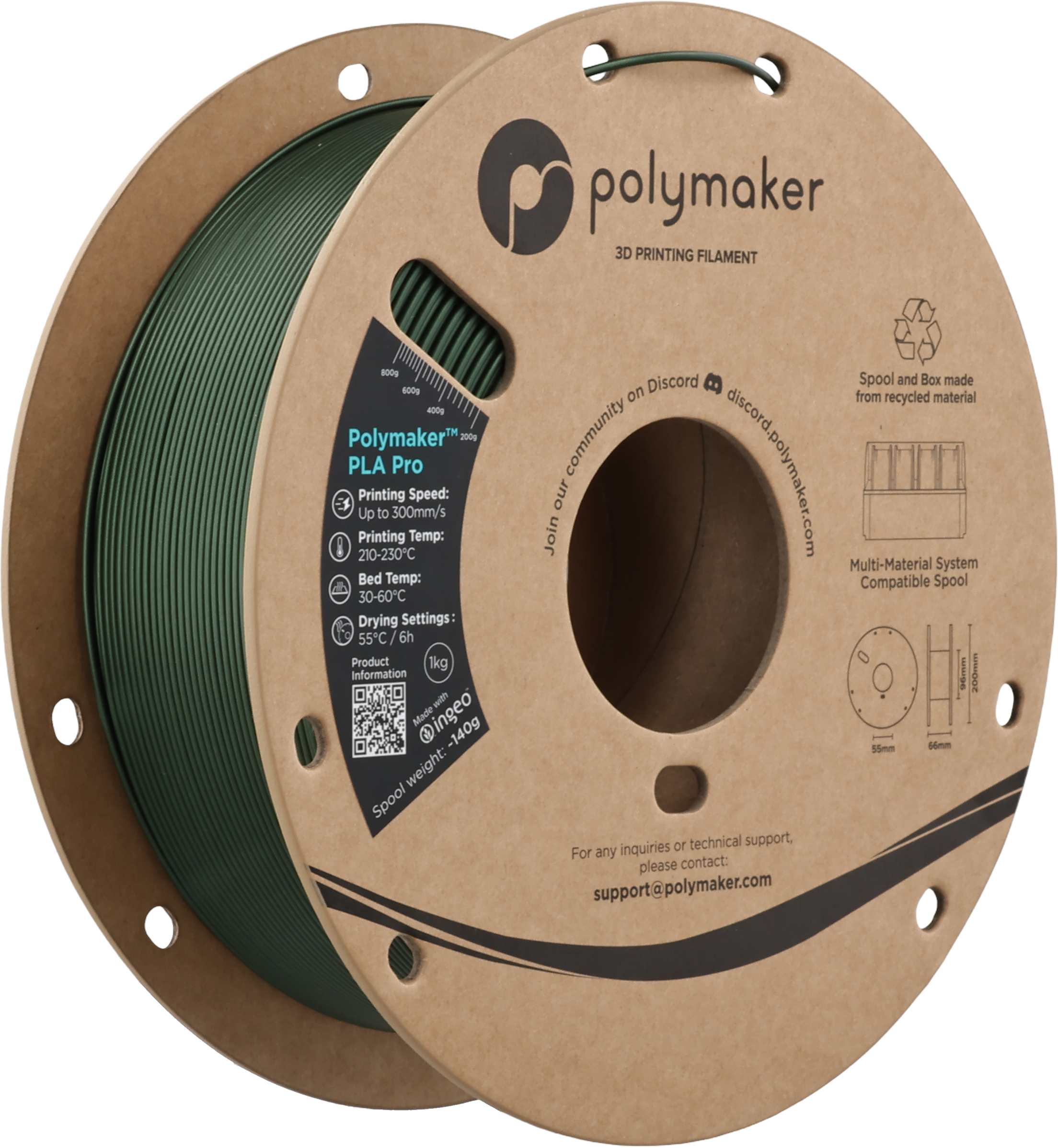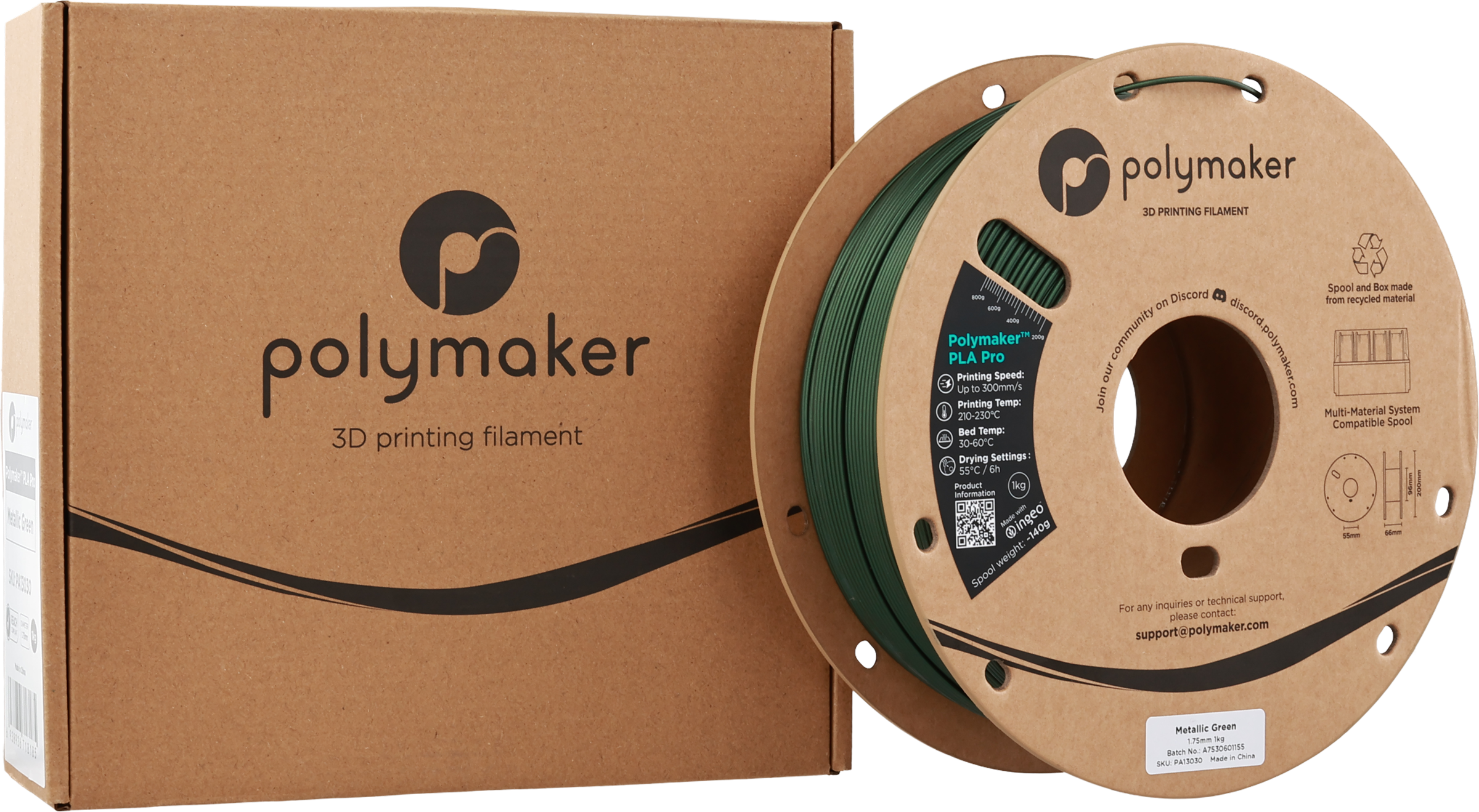 Polymaker PLA Pro Metallic Green, 1,75 mm / 1000 g