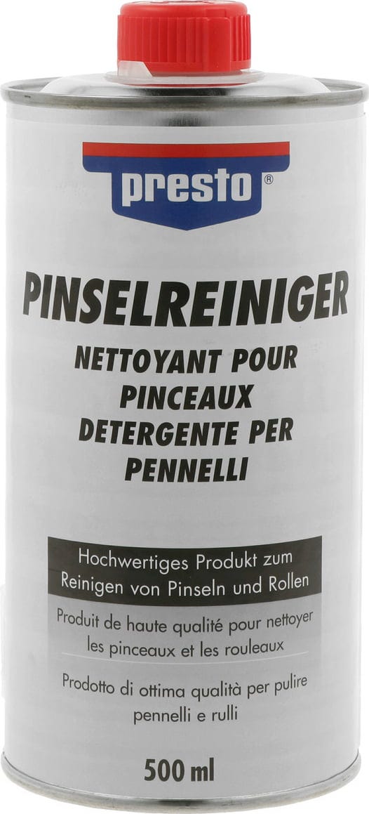 Sredstvo za čišćenje kistova marke presto snažno je sredstvo za temeljito uklanjanje nečistoća od boje te ostataka ulja i masti. Idealno je za čišćenje kistova, valjaka za boju i alata za lakiranje te omogućuje brzu i pouzdanu ponovnu uporabu.