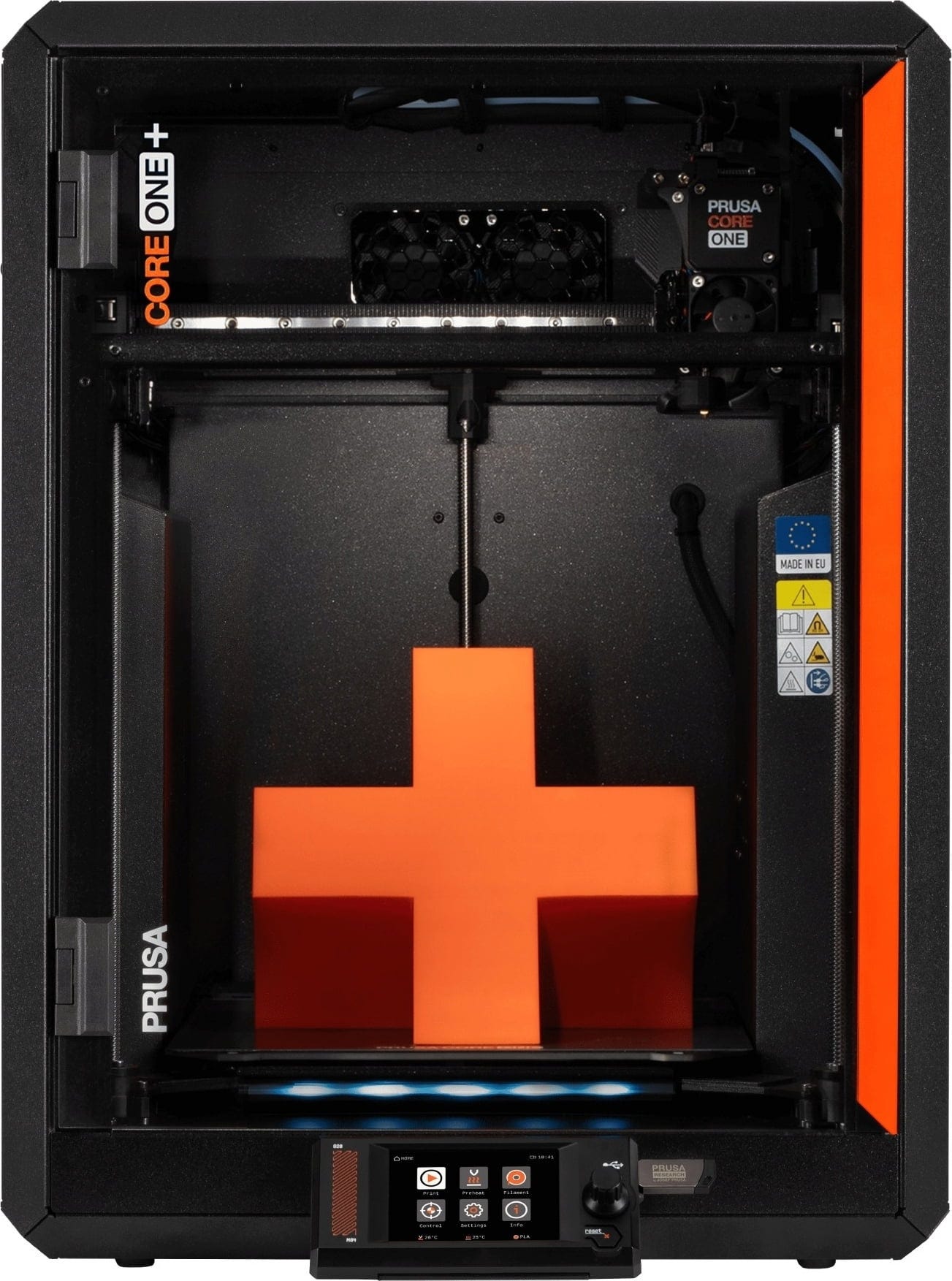 Čelični egzoskelet Prusa CORE One nije samo vizualno atraktivan, već je i remek-djelo stabilnosti i preciznosti. Istodobno, printer je pravi čudotvorac za uštedu prostora: s 50% manjom površinom postavljanja od MK4S-a, nudi 30% veći volumen ispisa. Zahvaljujući svom kompaktom dizajnu, na istoj površini možete smjestiti više printera – što kažete na print farmu?