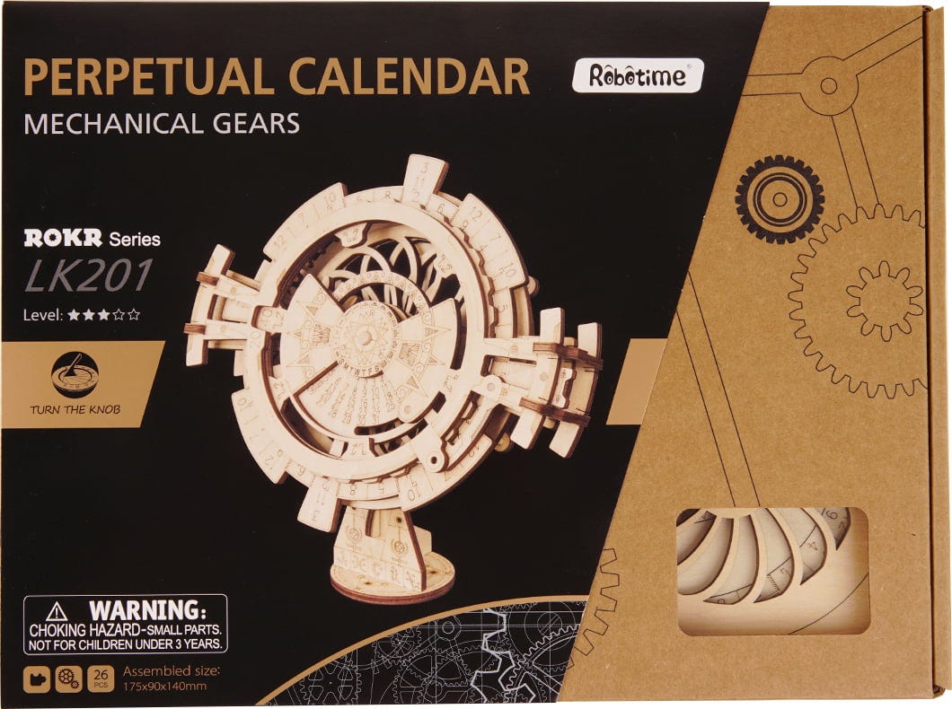 Kalendar za godine: Perpetual Calendar prikazuje godinu, mjesec, dan i dan u tjednu te je namijenjen za razdoblje od 2018. do 2040. Pomoću lagano podesivih diskova datum se jednostavno prilagođava i kalendar postavlja prema tvojoj vremenskoj zoni. Jednom sastavljen, prati te godinama.