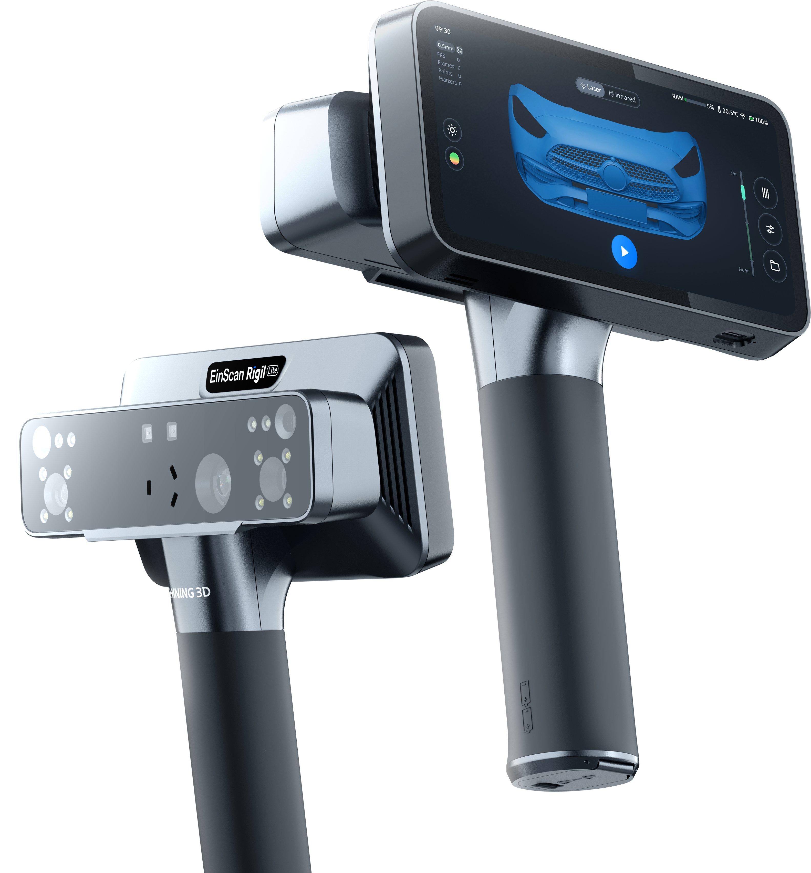 S moćnim hardverom, AMOLED zaslonom osjetljivim na dodir i izmjenjivim baterijama, EinScan Rigil Lite nudi potpuno mobilno rješenje. U kombinaciji s EXScan softverom pokriva cijeli tijek rada, od skeniranja preko obrade do izvoza i analize.