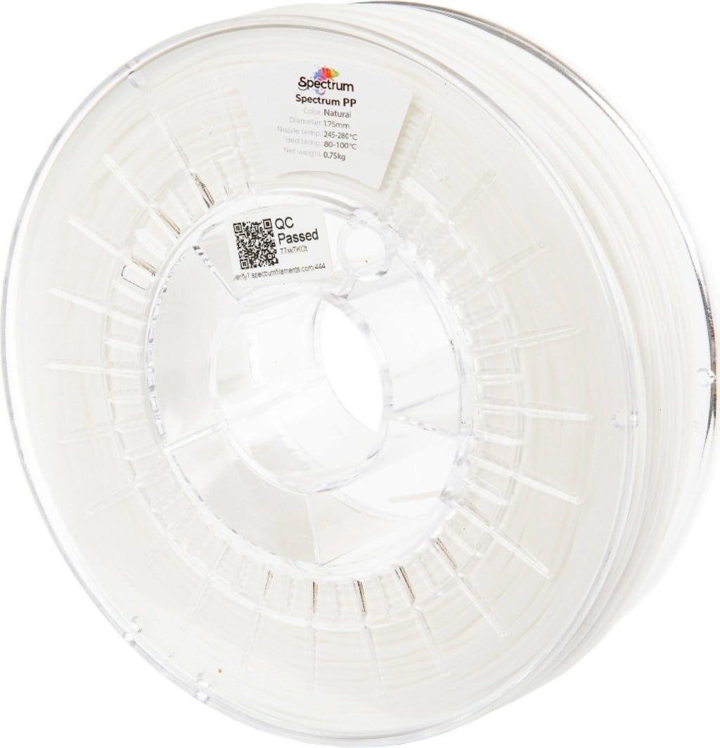 Spectrum PP je visokoučinkoviti polipropilenski filament posebno razvijen za primjene gdje se zahtijeva mala težina, velika fleksibilnost te izvanredna kemijska i mehanička postojanost. Materijal kombinira strukturnu izdržljivost s izuzetnom fleksibilnošću, postižući otegljivost do 600 % bez lomljenja. S Shore tvrdoćom od 50D, Spectrum PP pokazuje visoku otpornost na abraziju, pukotine i habanje te nudi potpunu otpornost na vodu, deterdžente i mnoge kemikalije.
