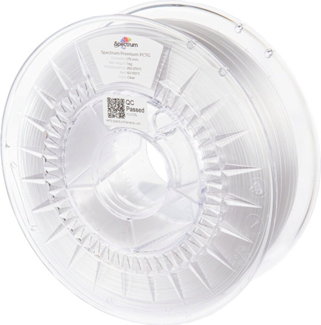 Premium PCTG by Spectrum je kopoliester koji ima slična svojstva kao PET-G, što ga čini izvrsnom alternativom. Filament se odlikuje visokom otpornošću na udarce, dimenzionalnom stabilnošću i niskim skupljanjem. Dodatna svojstva uključuju otpornost na temperature do 76 °C, visoku elastičnost i izvanrednu kemijsku otpornost.