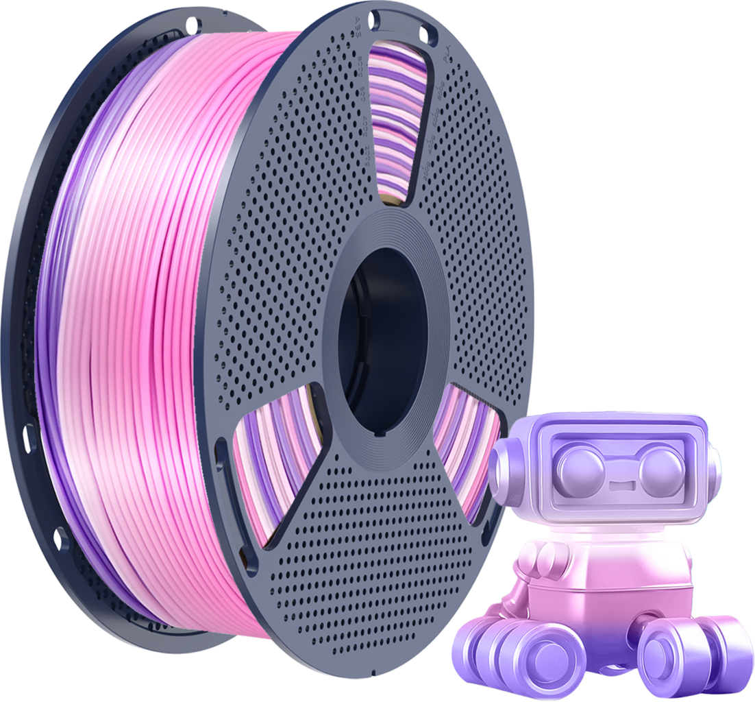 Silk PLA+ od SUNLU je čvrst PLA filament koji koristi malu količinu termoplastičnih elastomera (TPE) kako bi stvorio svilenkasto gladak završetak s sjajnom površinom. Materijal s glatkom teksturom jamči dobru adheziju na površini za izgradnju te izvrsno prianjanje slojeva bez uvijanja i s malo skupljanja.