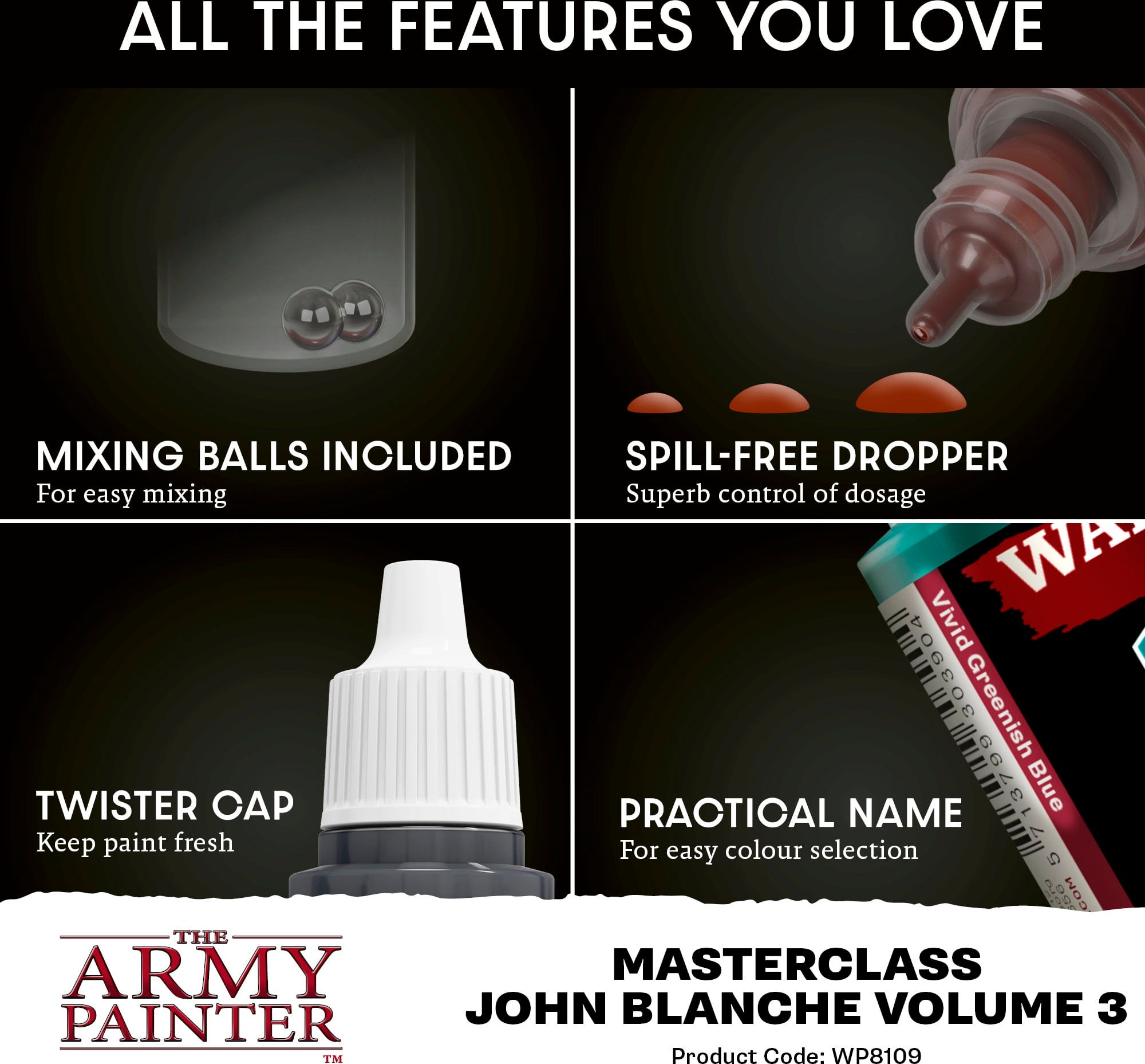 The Army Painter Masterclass John Blanche Vol. 3 otvara sljedeću razinu grimdark palete i uvodi vas u svijet hladnoće, tišine i prikrivene napetosti. Razvijen u bliskoj suradnji s Grimdark legendom Johnom Blancheom, ovaj prvi ekspanzijski set Masterclass serije proširuje emocionalni spektar dodajući novi, ledeni pol.