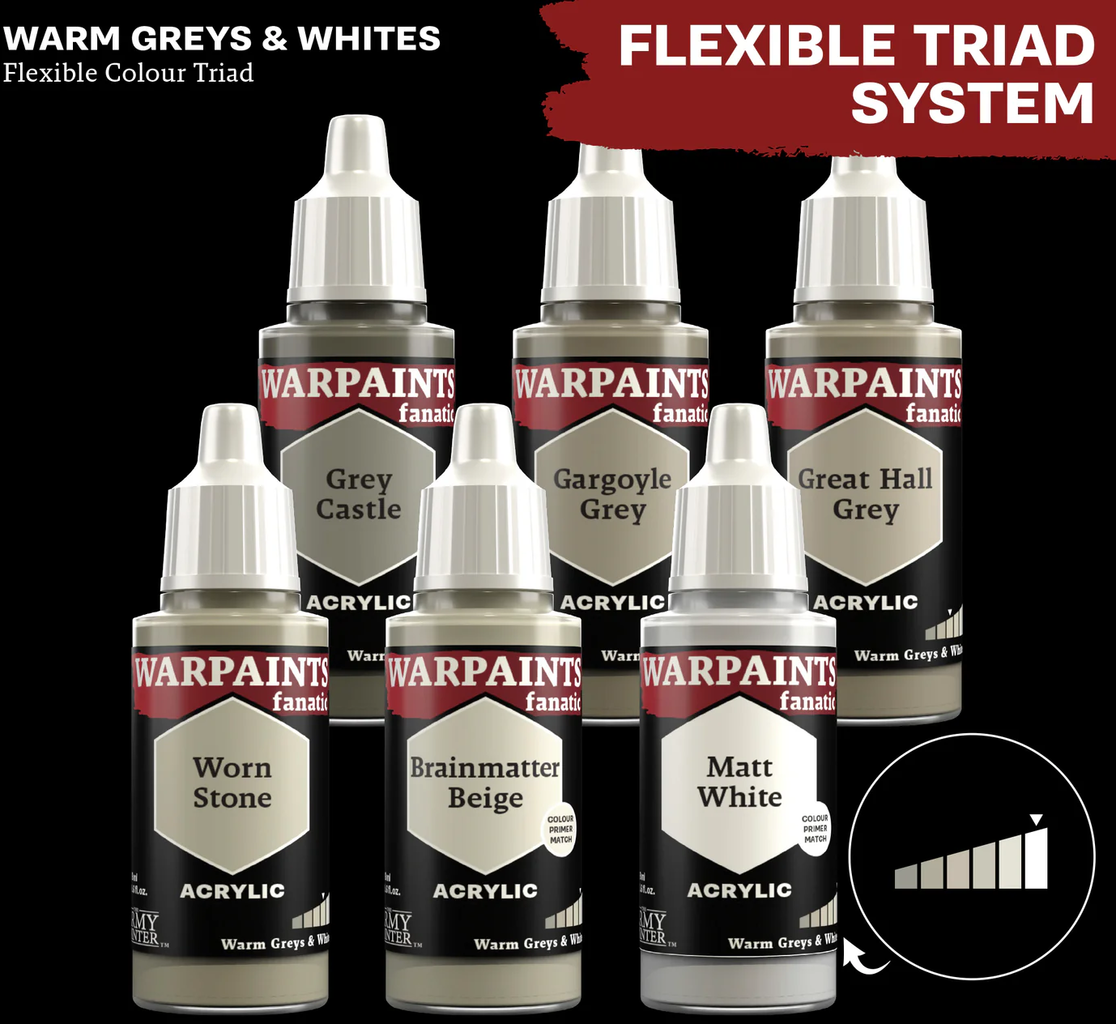 S Flexible Colour Triad Systemom, The Army Painter razvio je pametan koncept koji olakšava miješanje i odabir boja prilikom bojanja minijatura. Svaka triada sastoji se od šest boja, a sve su one izgrađene na zajedničkoj osnovnoj boji. Ove boje variraju od vrlo tamnih do vrlo svijetlih, stvarajući skladnu paletu boja.
