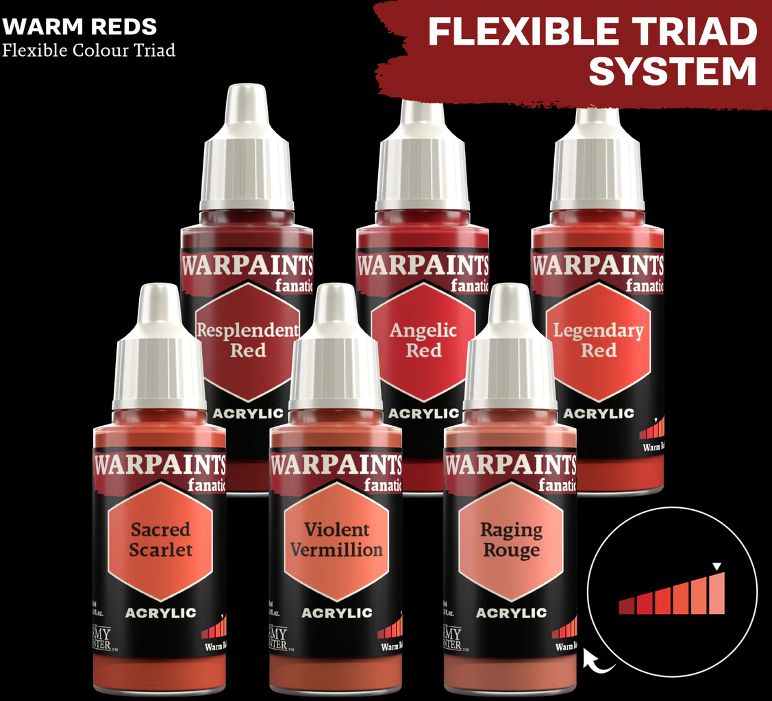 S Flexible Colour Triad System-om, The Army Painter je razvio pametan koncept koji olakšava miješanje i odabir boja prilikom slikanja minijatura. Svaka triada sastoji se od šest boja koje su sve temeljene na zajedničkoj osnovnoj boji. Te boje se protežu od vrlo tamnih do vrlo svijetlih i tako čine harmoničnu paletu boja.